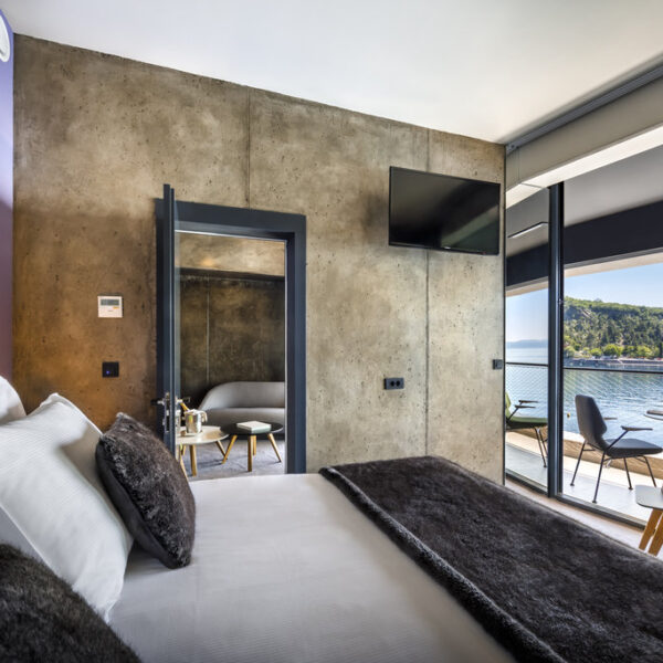 In this designer suite, you will feel better than if you were at home. The beautiful terrace provides a spectacular view of the Kvarner archipelago, while the ambience of the apartment itself is equally striking. The designer furniture and bedroom separated from the living room are just a couple of reasons why you’ll want to stay a day longer.